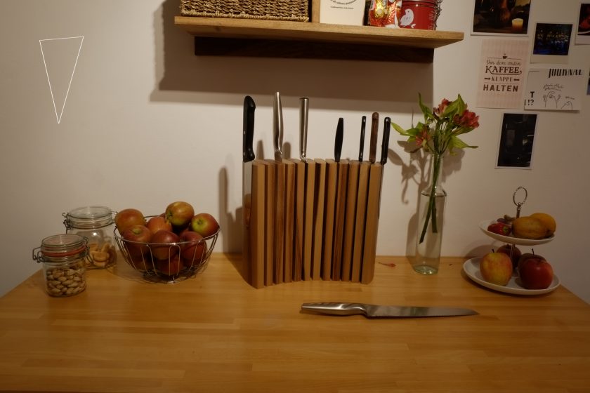 messer aufbewahren, geht auch so. einzelne elmente, jeweils mit magnetkern, fügen sich zu einem ganzen zusammen.