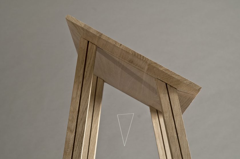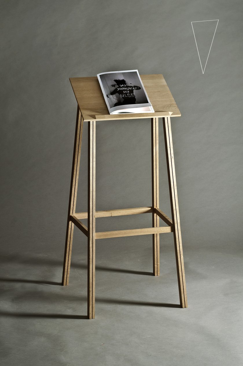 ziel war es, aus der ferne die aufmerksamkeit auf sich zu ziehen und in der nähe unter dem buch zurück zu treten. schräg nach außen gerichtete füße vergrößern die standfläche und ziehen den betrachter richtung zentrum. die konstruktion mit fremdfedern und längsschnitten schafft viel spielraum für unterschiedliche proportionen und lässt alles leichter wirken.