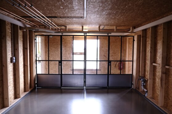 die gärtnerei löwenzahn ist in jedem fall besonders. beim neubau steht auf der einen seite das recyclierte glas-gewächshaus und auf der anderen seite der bioladen mit viel holz, weißen wänden und grauem industrieboden. dazwischen das cafe mit alpenblick. hier hatte ich, ua verschiedene stahltüren, die den stil des gewächshauses im restlichen gebäude verteilen, umgesetzt.